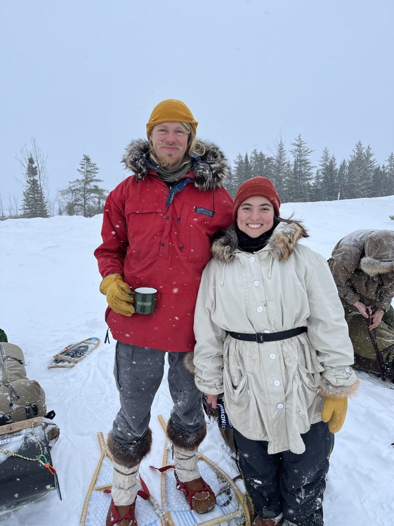 We’ll spend our days exploring the winter forest and practicing the daily skills of a winter camp: snowshoeing, gathering boughs for the tent floor, setting snares for snowshoe hare, cutting firewood, cooking on woodstoves, crafting projects, and sipping lots of hot drinks.